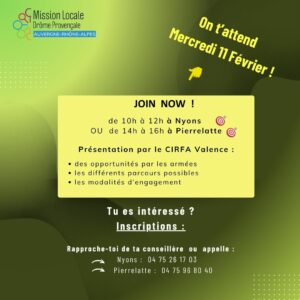 Contactez votre Mission locale pour prendre rendez-vous avec un conseiller.